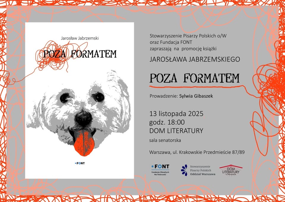 Razem z Fundacją FONT serdecznie zapraszamy na wyjątkowe spotkanie z Jarosławem Jabrzemskim - warszawskim poetą, licencjonowanym zarządcą nieruchomości i redaktorem, autorem dobrze znanym z ironii i humoru.