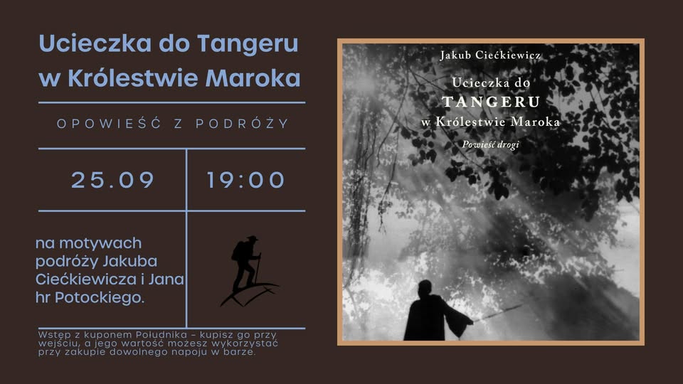 Skontaktuj się z namiZapraszamy na niezwykłe spotkanie z podróżnikiem, pisarzem i fotografem – Jakubem Ciećkiewiczem, autorem książki „Ucieczka do Tangeru w Królestwie Maroka”.